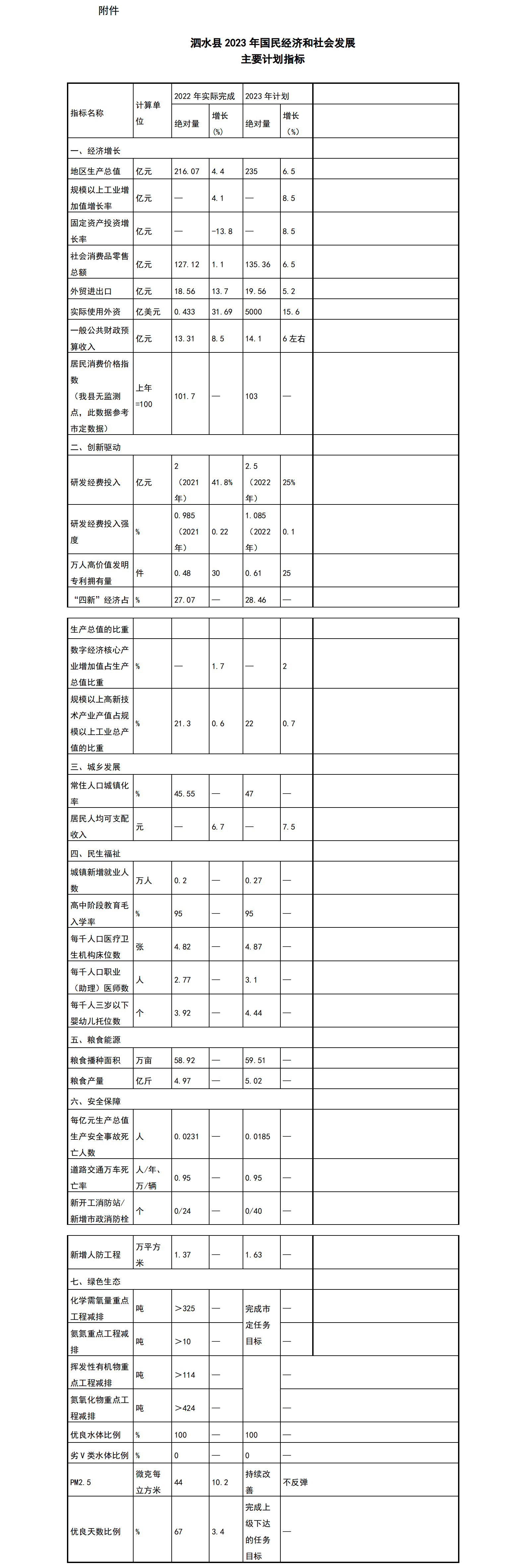 附件:泗水县2023年国民经济和社会发展主要计划指标