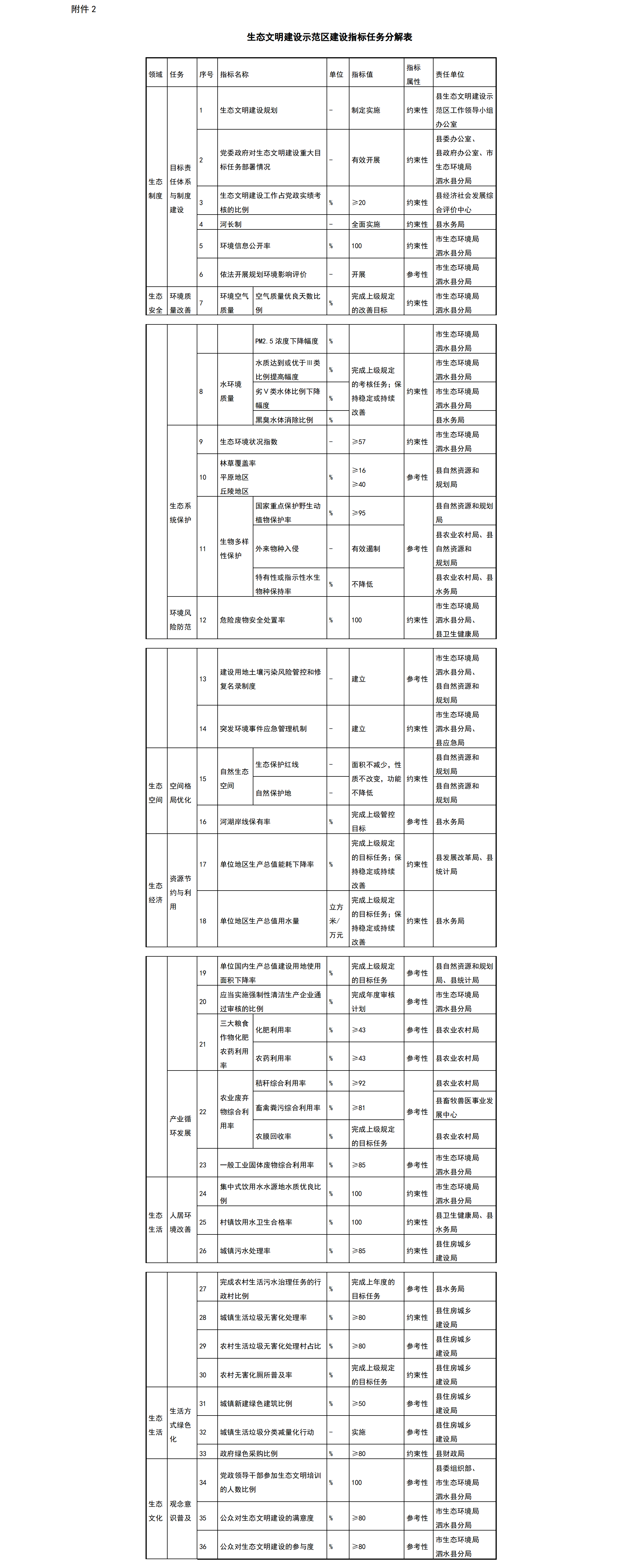 2.生态文明建设示范区建设指标任务分解表