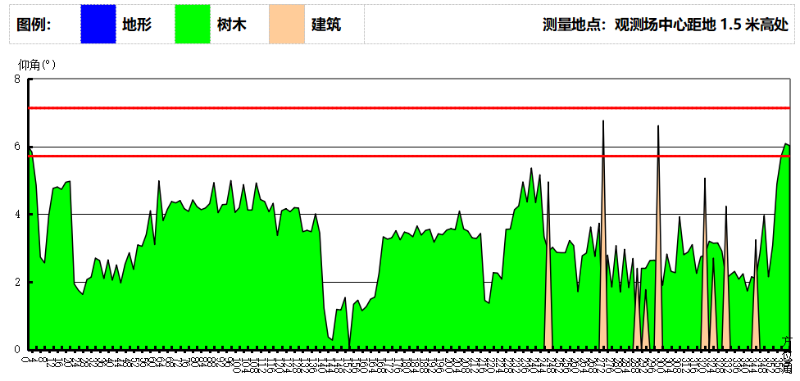 济宁国家基本气象站观测场周边主要障碍物遮蔽仰角现状图