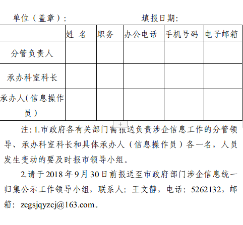 邹城市政府部门涉企信息统一归集公示分管负责人、科长及联络员统计表