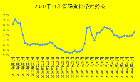 第 50周,我省鸡蛋价格继续回升。截至本周末,我省鸡蛋销售平均价格为7.75元/公斤,同比回落20.51%,环比回升4.17%。就全省监测的26个价 格县来看,目前我省最高价为8.40元/公斤,最低价为7.20元/公斤,蛋鸡配合料价格与上周相比略增。第50周蛋雏鸡为2.50元/只,同比降低 49.49%,环比升高1.21%。