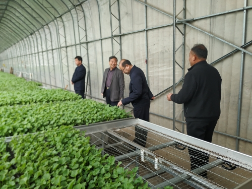 调研组先后到喻屯镇大周村瓜果育苗基地,听取了金喻农科农作物专业合作社负责人周传远关于种苗繁育情况及合作社经营情况介绍,实地察看了种苗生长情况。大周村种苗繁育基地占地100余亩,建有瓜果苗繁育大棚11个,采取订单培育,现繁育优质甜瓜苗100余万株,能够满足1500亩左右甜瓜苗种植需求。