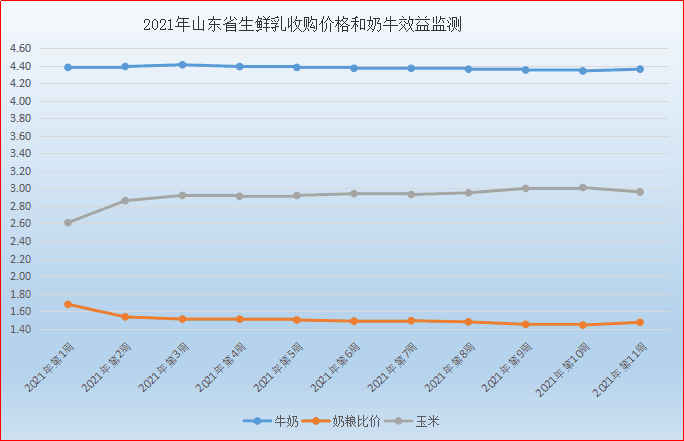 第11周(3月15日-3月21日),我省生鲜乳价格为4.36元/公斤,同比升高13.84%,环比回升0.46%。在我省监测的26个县中,剔除三个无效数据,有8个县的价格高于全省平均价格,其中最高价格在泰安宁阳为4.80元/公斤;最低价格出现在蓬莱和青州,为4.10元/公斤,最高价与最低价差值为0.70元/公斤,差价与上周相比收窄,监测县奶价全部达到4.10元以上,奶业整体发展度差异度有所减小。本周奶粮比价为1.47:1,环比增加2.08%。