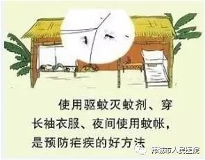 2、在疫区逗留期间,防止被蚊虫叮咬是预防疟疾最好的办法,如穿长袖衣服、涂抹防蚊油、睡觉时安放蚊帐。在蚊虫滋生繁殖旺盛季节,可采用灭蚊药水对居住地进行喷洒,或对蚊帐进行处理。