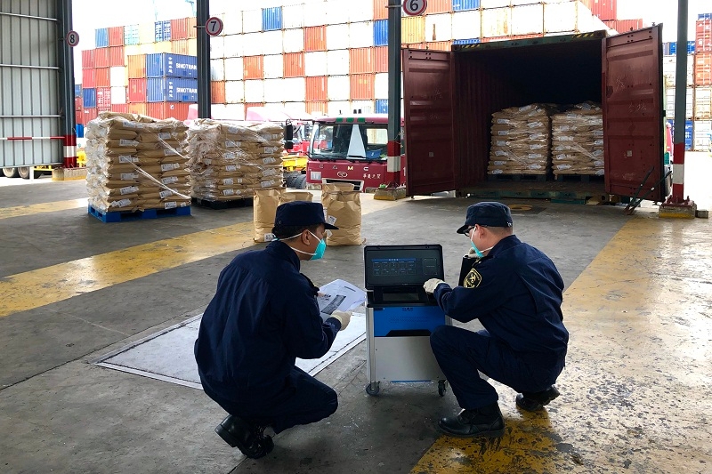 “有害元素、剂量率未超标,气味正常,排除嫌疑。”近日,汕头保税区联通工业有限公司向汕头海关所属广澳海关申报进口101吨聚乙烯,现场关员使用现场多光谱固废筛查仪进行快速筛查,不到5分钟时间,现场多光谱固废筛查仪便显示出检测结果。