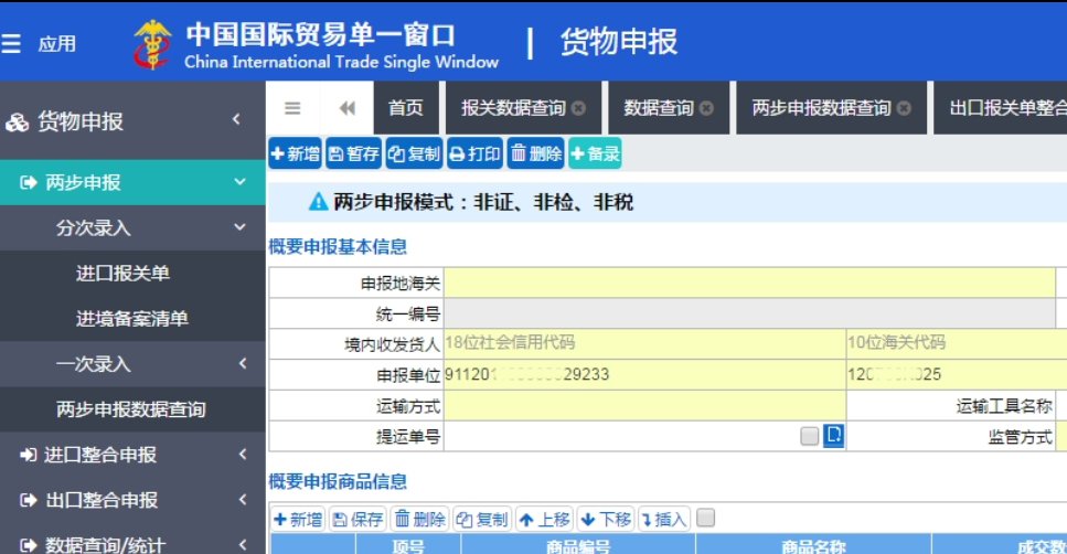 ③查找已完成概要申报并可以进行完整申报的报关单,按照系统界面要求,录入相关信息。