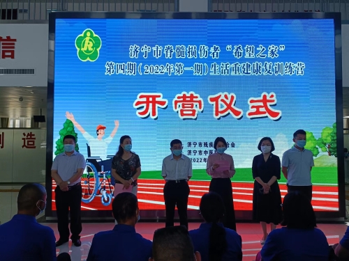 6月16日,济宁市脊髓损伤者“希望之家”第四期(2022年第一期)生活重建康复训练营开营仪式在市残疾人康复中心举行。市残联理事长张修占作开营动员讲话,市残联副理事长李萍、济宁市中医院副院长王乐荣以及济宁如常残疾人培训就业基地负责人等参加开营仪式。