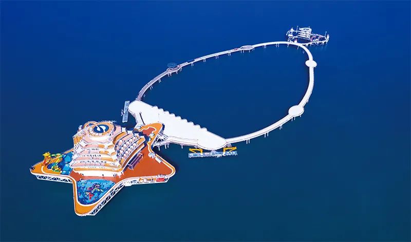 位于山东烟台四十里湾海域的“耕海1号”海洋牧场综合体,集渔业养殖、海洋文旅、科普教育等功能于一体,实现了第一产业和第三产业的深度融合。图为2023年4月28日拍摄的“耕海1号”海洋牧场综合体。