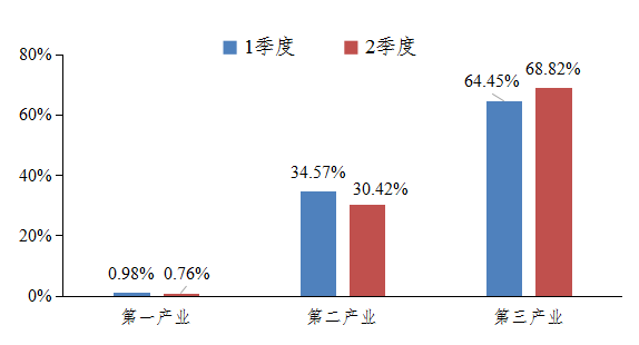 (二)服务业岗位需求同比、环比均有上升。今年以来,疫情防控形势稳定,服务业用工需求数量稳步提升,二季度以来,批发零售、交通运输、文化旅游、住宿餐饮等服务业复苏强劲,第三产业岗位需求占比同比上升12.48%、环比上升4.37%,岗位数量占比接近70%,恢复到疫情前水平,对保居民就业、保民生服务发挥重要兜底保障作用。