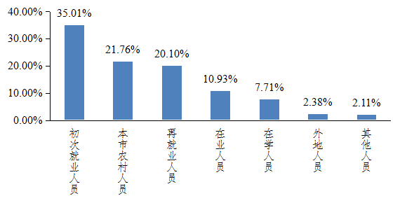 (一)求职者身份。二季度,应届高校毕业生进入求职高峰,初次就业人员比例环比增加1.97%,本地农村人员、再就业人员等求职群体占比略有下降。