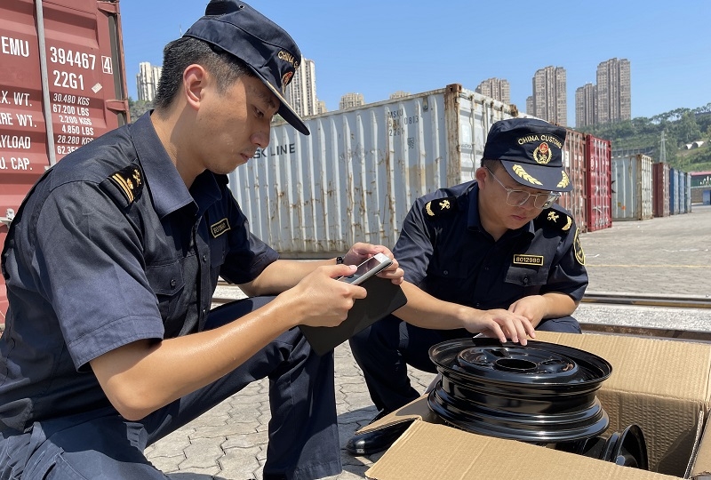 “一票进口铬矿、一票出口摩托车散件,已到达查验场。”这是重庆港海关货物查验科关员周易和庞振寰当天下午的查验任务。