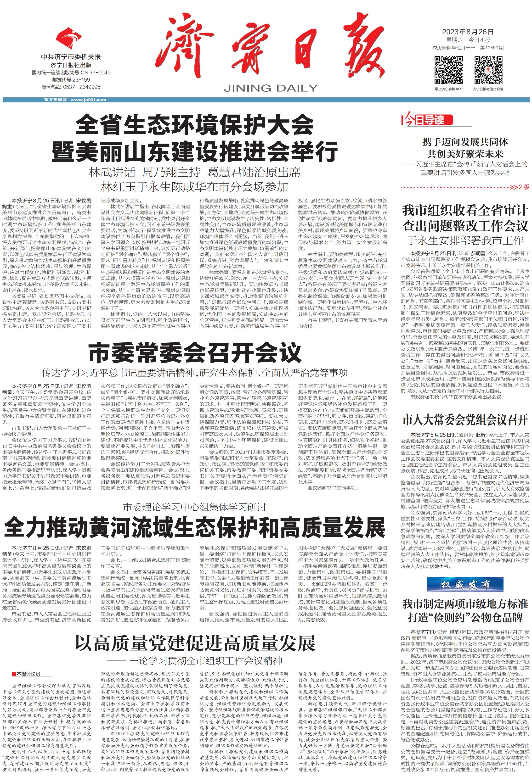 本报济宁8月25日讯(记者 郝明雷)今天上午,在收看了全省审计查出问题整改工作视频会议后,我市接续召开会议,市委副书记、市长于永生安排部署相关工作。