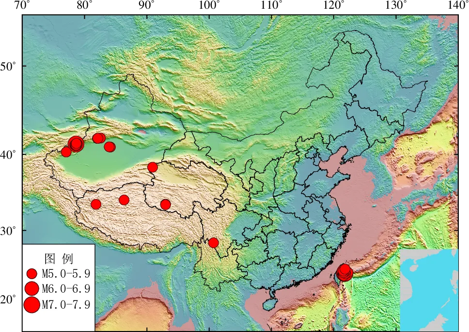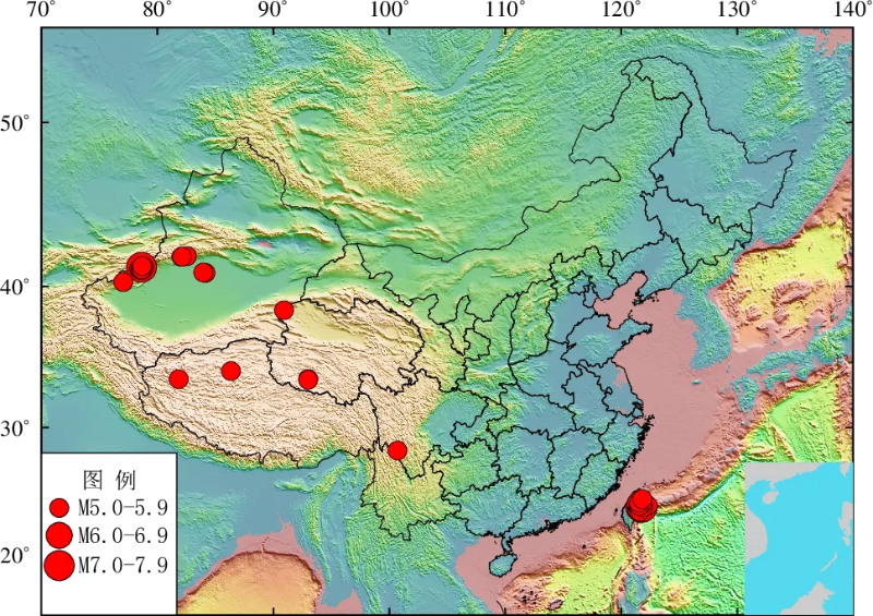 2024年以来全国共发生61次5级上地震,其中大陆地区25次,主要分布在天山地震带和青藏高原周缘地带;台湾花莲县及海域36次,最大地震为4月3日台湾花莲县海域7.3级地震。