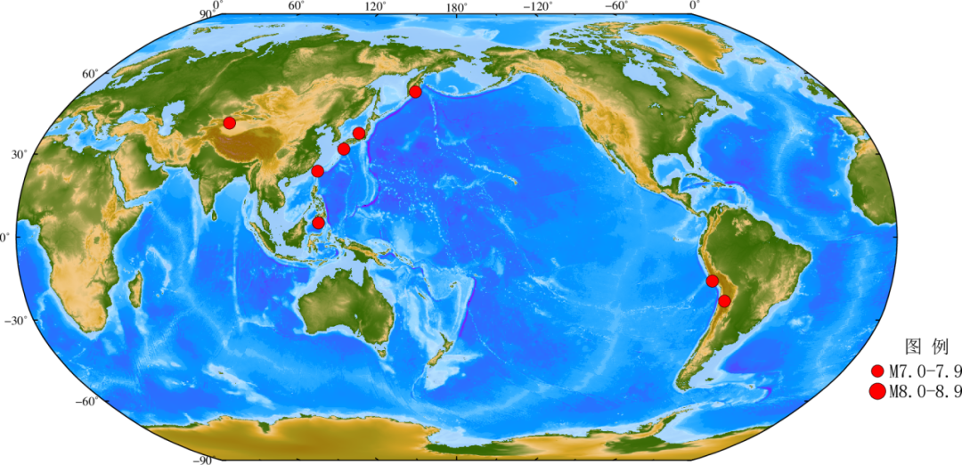 2024年以来,全球共发生8次7.0级以上地震,最大地震为1月1日日本本州西岸近海7.4级地震,地震活动主要分布在环太平洋地震带。