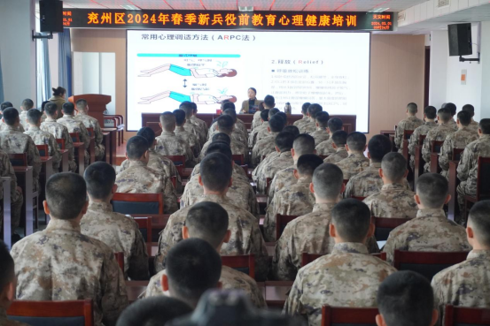 阳春三月,春暖花开。为缓解预定新兵心理压力,提高预定新兵入伍适应能力,扎实做好入伍新兵的心理健康服务工作,3月1日,兖州区人武部联合区退役军人事务局特邀济宁市荣军优抚医院心理科专家团队为2024年度春季预征新兵开展心理健康教育专题辅导。
