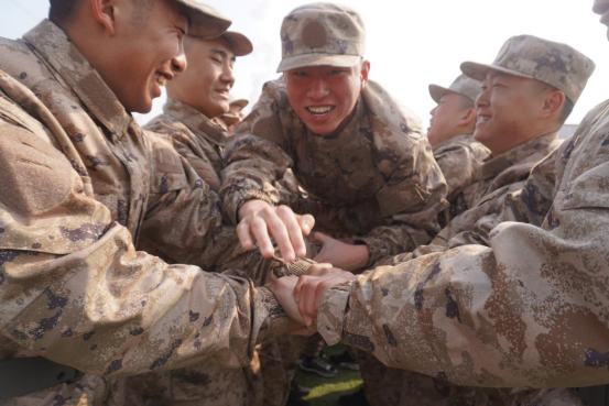 在操场上,心理专家团队和预定新兵们一起开展了“携手传递”“解手链”等团体心理互动小游戏,引导新兵在游戏中释放烦恼压力,提高信任感、责任感和被认同感,增强团体意识。