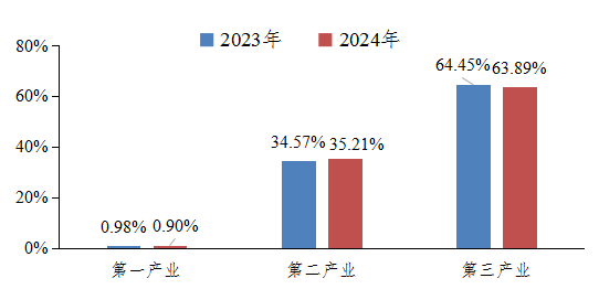 (一)产业需求。一季度第一、二、三产业岗位需求占比分别为0.90%、35.21%、63.89%。产业需求结构变化不大,第一、第三产业同比下降0.08%、0.64%,第二产业同比上升0.56%。春节过后招聘市场进入旺季,第二产业岗位需求保持在35%以上,为推进我市工业强市战略、稳定发展大局发挥出重要作用。