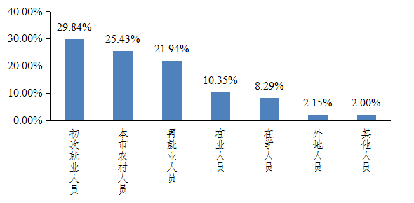 (一)求职者身份。春节过后,大量返乡农村劳动力加入到当地市场求职,本市农村人员求职群体同比有所增加,初次就业人员同比有所下降,其他求职群体占比相对稳定。