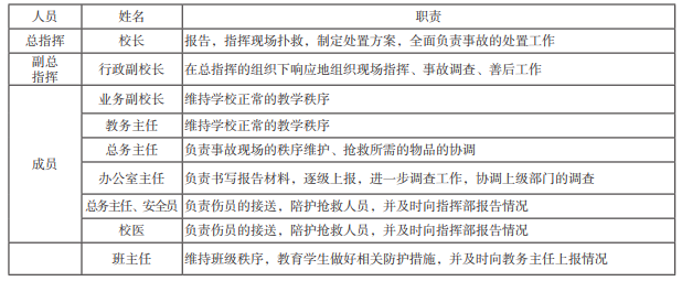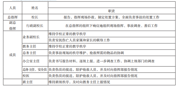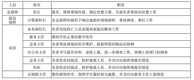 (6)医务救援组:负责对受伤师生进行紧急救治。