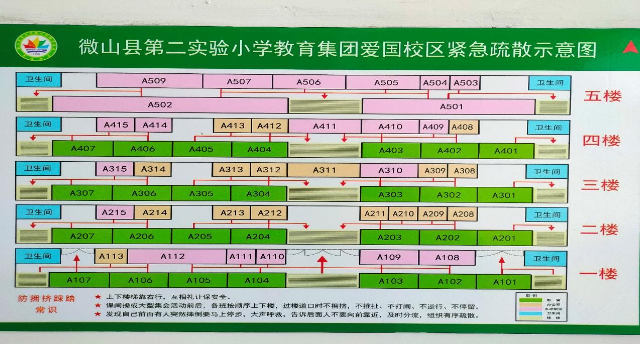 楼栋 | 楼层 | 东楼梯/出口疏散班级 | 中间楼梯/出口疏散班级 | 西楼梯/出口疏散班级 |