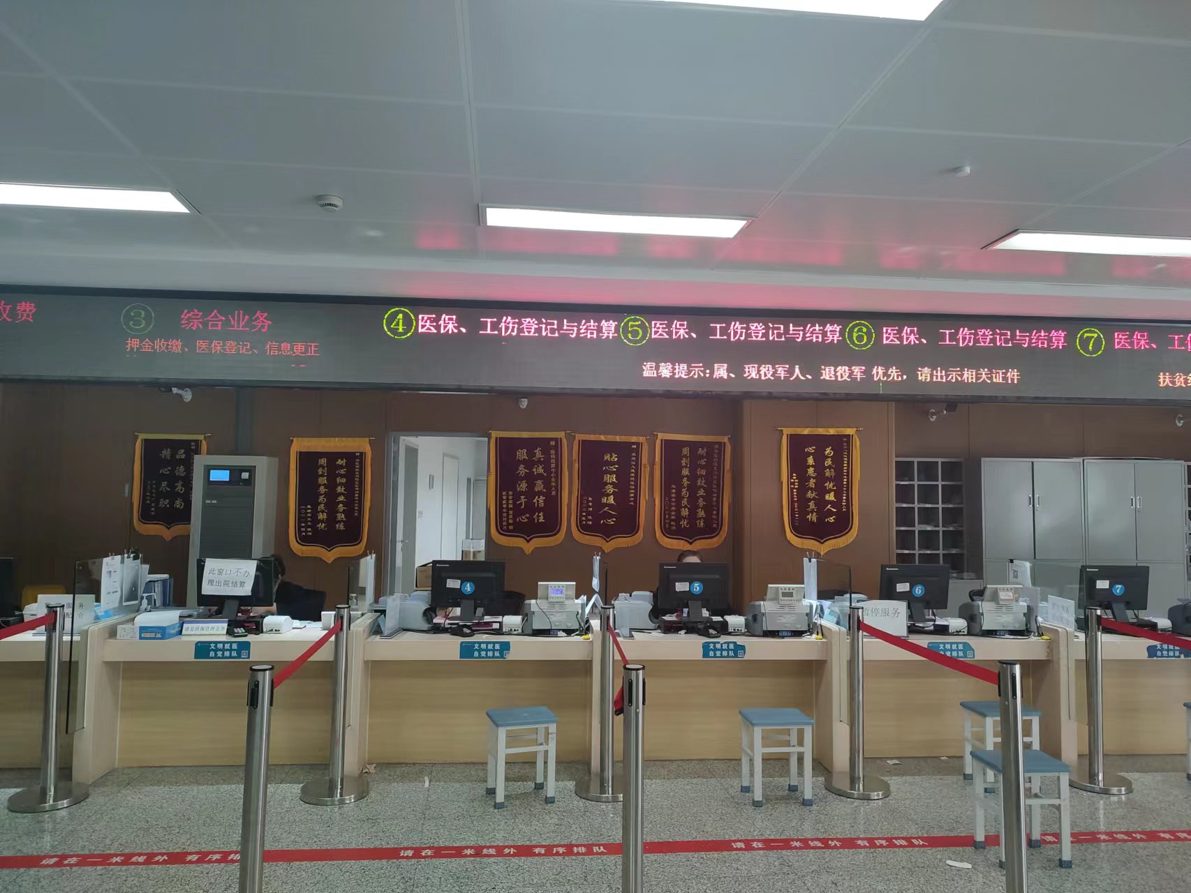 门诊现场报销,收款处仅需支付报销后自费费用;住院患者享受先诊疗后付费,出院时现场结算,仅需支付报销后自费费用