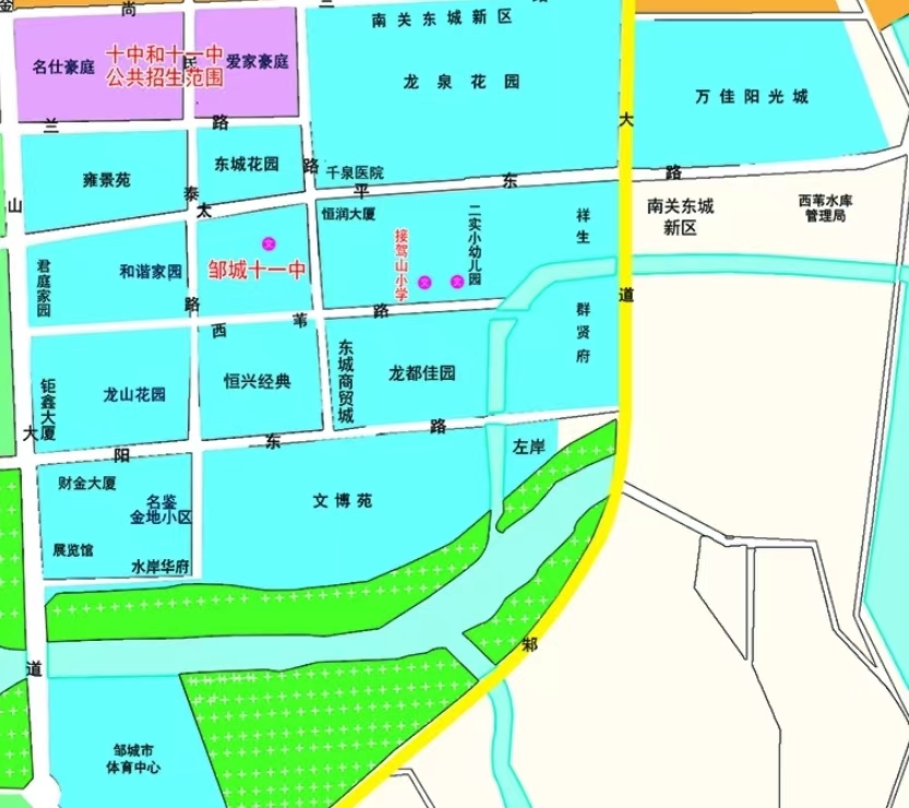 东起邾国大道,沿尚兰路向西,至接驾山路向南,至欧兰路向西,至金山大道向南,至邾国大道向北,至太平东路向东,沿万佳阳光城东墙向北、北墙向西,至邾国大道向北,至尚兰路的城区范围(名仕豪庭、爱家豪庭为市第十中学和市第十一中学的公共招生区域)。