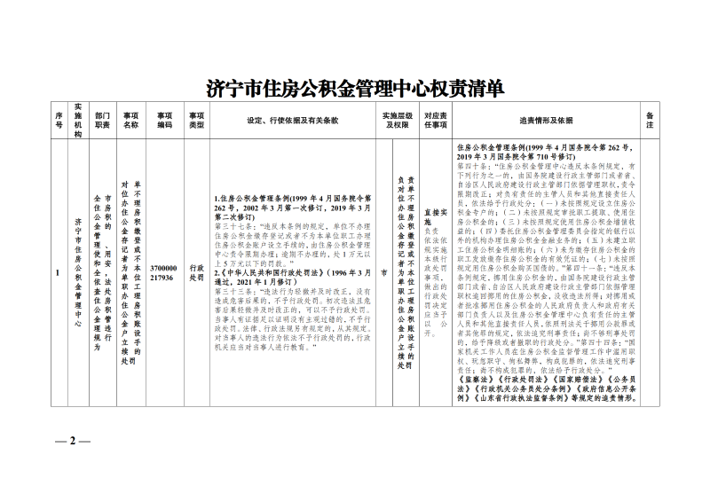 济宁市住房公积金管理中心关于调整《济宁市住房公积金管理中心权责清单》的通知