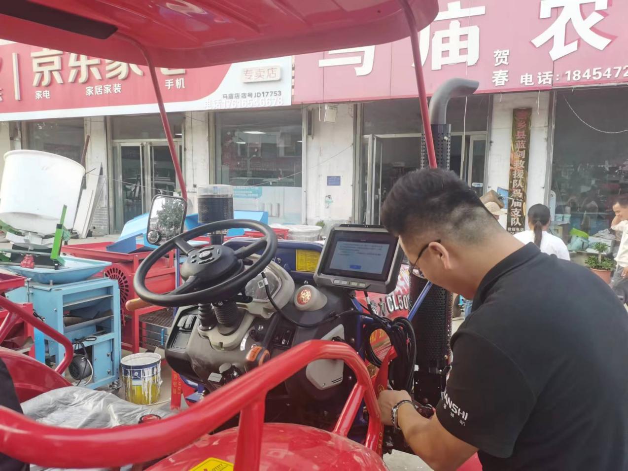 9月26日,在金乡县马庙镇一家农机经销点,三台拖拉机正逐一安装农机自动驾驶系统。一机主说:“以前拖拉机农田作业需要司机去驾驶,不仅劳动强度大,成本高,还可能存在重复播种、漏播情况。夜间视线不好,农田作业也会被耽搁,现在有了自动驾驶系统,不光这些问题解决了,白天和晚上都能作业。”