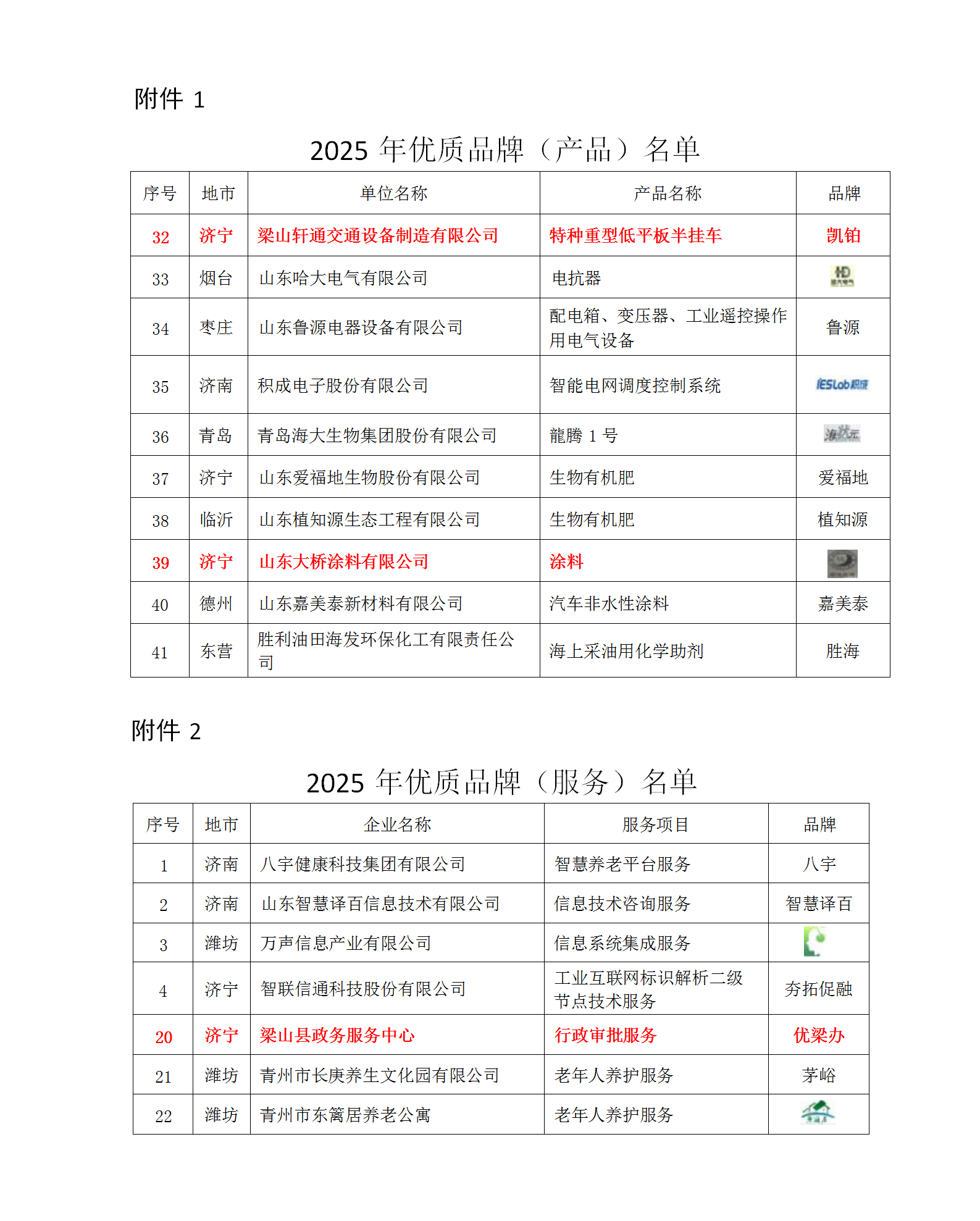 近日,山东省质量评价协会正式发布《关于公布山东省质量评价协会2025年优质品牌认定结果的通知》(鲁质协字 [2025]14号),梁山县再传捷报——梁山轩通交通设备制造有限公司“凯铂”、山东大桥涂料有限公司“宏达益佰”荣获山东优质品牌产品;梁山县政务服务中心“优梁办”荣获山东优质品牌服务。济宁市共9家认定企业(单位),梁山县数量位居全市第一,其中,梁山县政务服务中心“优梁办”品牌是济宁唯一1家获评的行政机关。