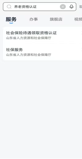 第二步:首页搜索“养老资格认证”,点击进入“社会保险待遇领取资格认证”。