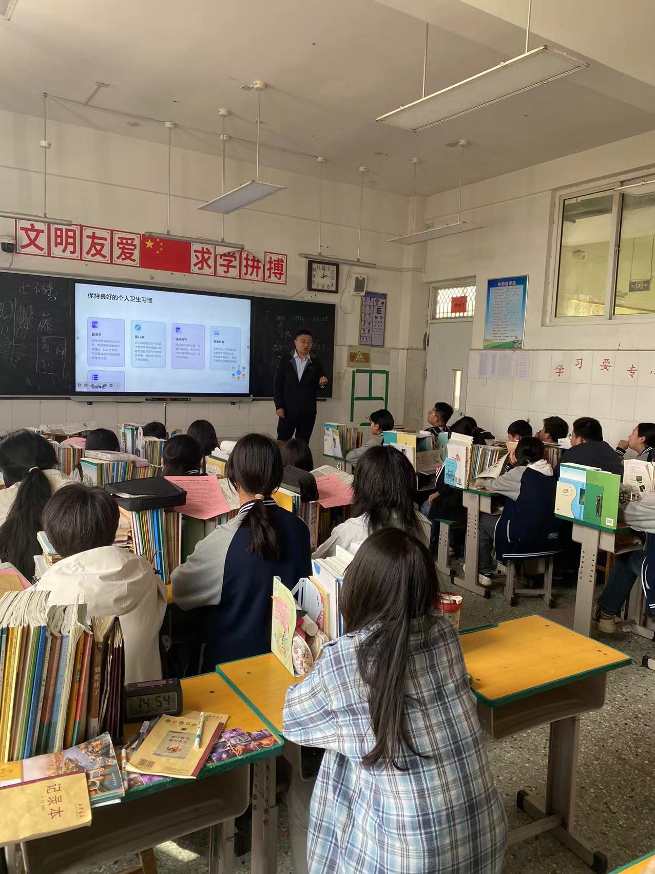 预防措施是本次讲座重点。详细介绍保持良好个人卫生习惯的重要性,如勤洗手、常通风、不随地吐痰等,强调这些简单举措能有效降低感染风险。同时,建议师生积极参加体育锻炼、保证充足睡眠与合理饮食,以增强自身免疫力。针对学校环境,指出要做好教室、宿舍等场所的定期消毒和通风换气工作。