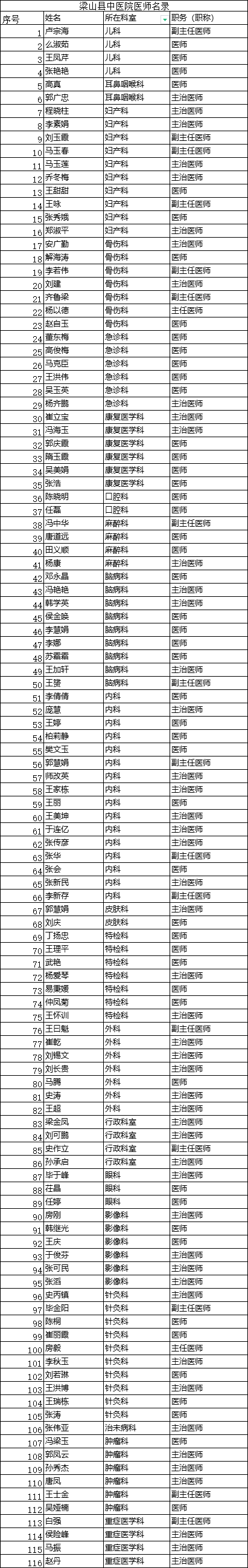 梁山县中医院医师名录