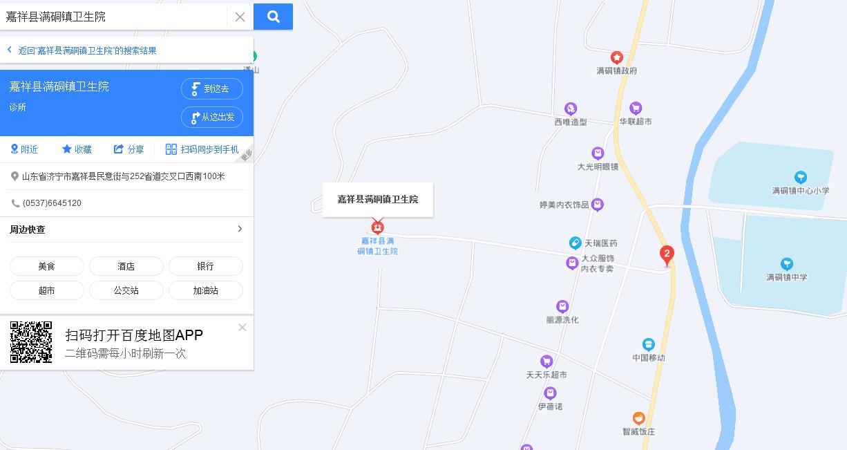 交通方式:山东省济宁市嘉祥县民意街与252省道交叉口西南100米(满硐镇公交医院路口向西100米)