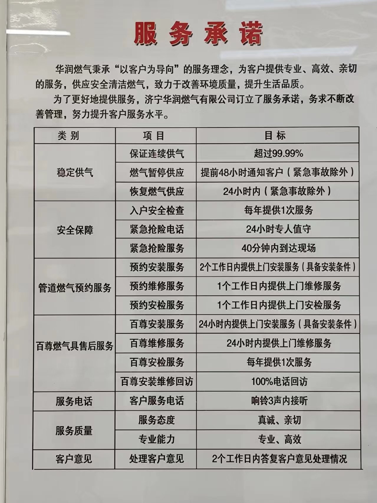 网点设置 | 1、华润燃气客户服务中心 (济宁高新区崇文大道431号(英特力商务中心楼1--2层)) 营业时间:8:30-17:00 2、济宁高新区为民服务中心 (崇文大道科技馆5566号) 营业时间: 9:00-12:00 9:00-17:00 3、济宁高新区柳行街道为民服务中心 (大禹西路创启大厦CBD一楼) 营业时间: 8:30-12:00 13:30-17:00 | ||