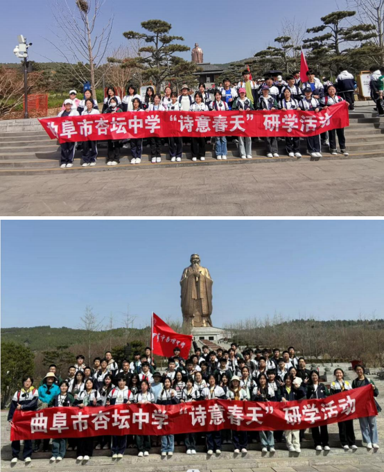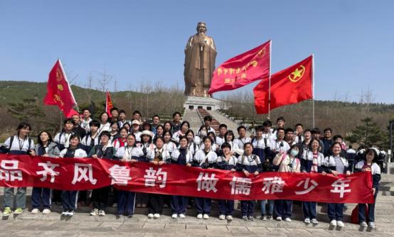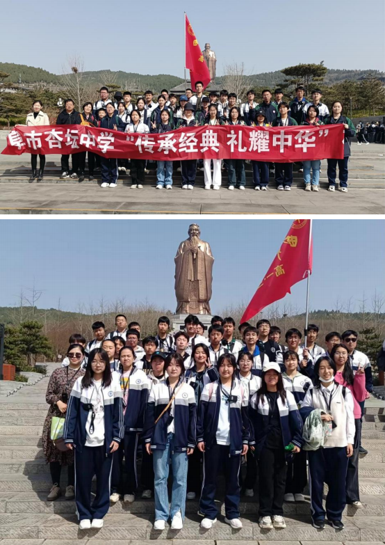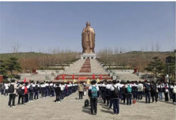 读万卷书,行万里路。为弘扬中华优秀传统文化,掀起 学习浪潮;感受春天气息,丰富精神文化;传承国学精髓, 争做儒雅少年。3 月 29 日清晨,迎着和煦的春风,曲阜市杏 坛中学高中部师生在校孔子广场前集合,乘车奔赴尼山圣境, 开启诗意春天系列活动——“春季祭孔,儒学研修”之旅。