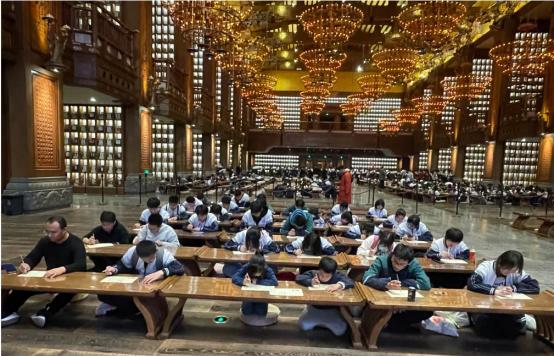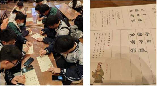 的是最大的主厅——“仁”厅,同学们在这里席地而坐,伏 案临摹,体验手写《论语》经典,感受儒学文化魅力。一时 间,历史与现实交织,孔门弟子三千的盛况仿佛再现。