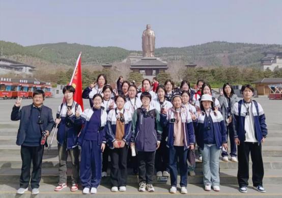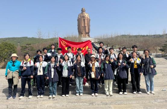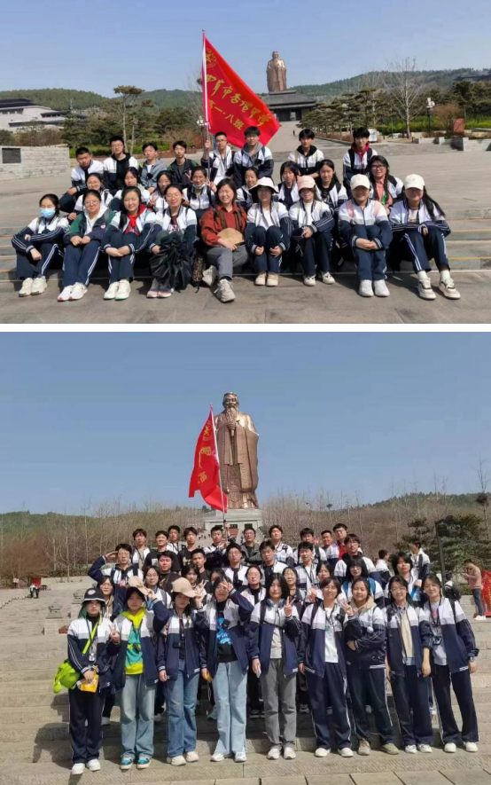诗意春天,瞻仰圣像演出结束,同学们走出大学堂,再 次来到世界最大的孔子像正前方,瞻仰圣人像,集体合影留 念。本次“春季祭孔,儒学研修”之旅,作为我校“诗意春 天”系列活动的重要一环,在同学们的成长历程中留下了浓 墨重彩的一笔。