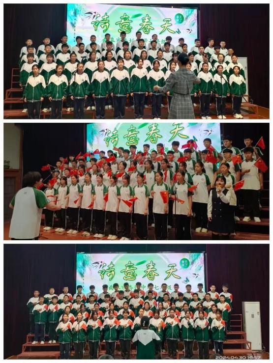 七年级全体学生通过本次班歌集体合唱的形式,用激扬歌 声唱响诗意春天,唱出了正能量,展示了青春的多姿绚丽,礼 赞了伟大的新时代!
