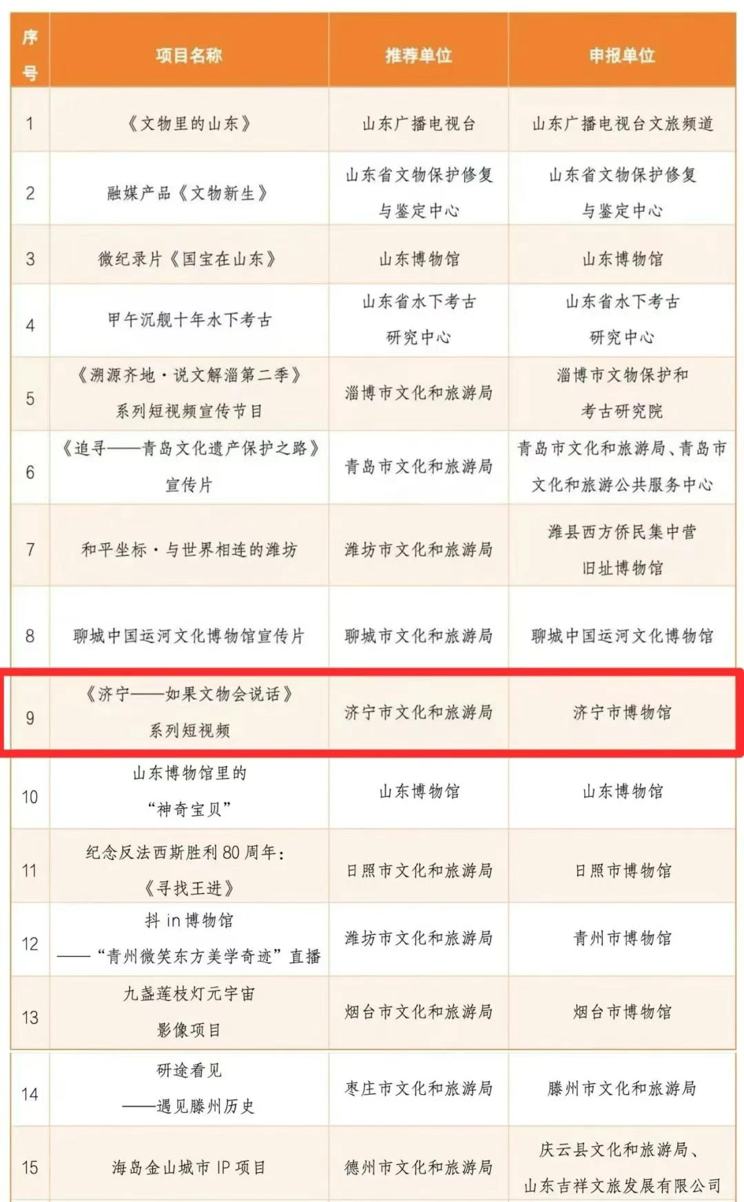 2025年度山东文物新媒体传播精品推介优秀项目名单