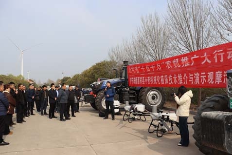 3月13日,山东省“十百千万”农机推广大行动济宁市暨嘉祥县小麦机械化植保技术推介与演示观摩活动在大张楼镇新营村举办,市农机中心刘奇志主任,部分县市区农机中心负责人,嘉祥县农业农村局农技专家及农机中心全体人员、各镇(街道)农机站站长、部分农机合作社及农机经销商代表参加活动。