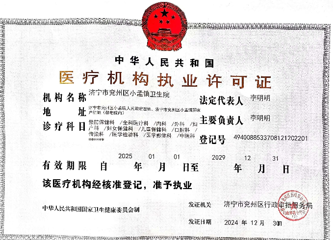 详细地址 | 济宁市兖州区小孟镇府前路42号 | 主管部门 | 济宁市兖州区卫生健康局 |