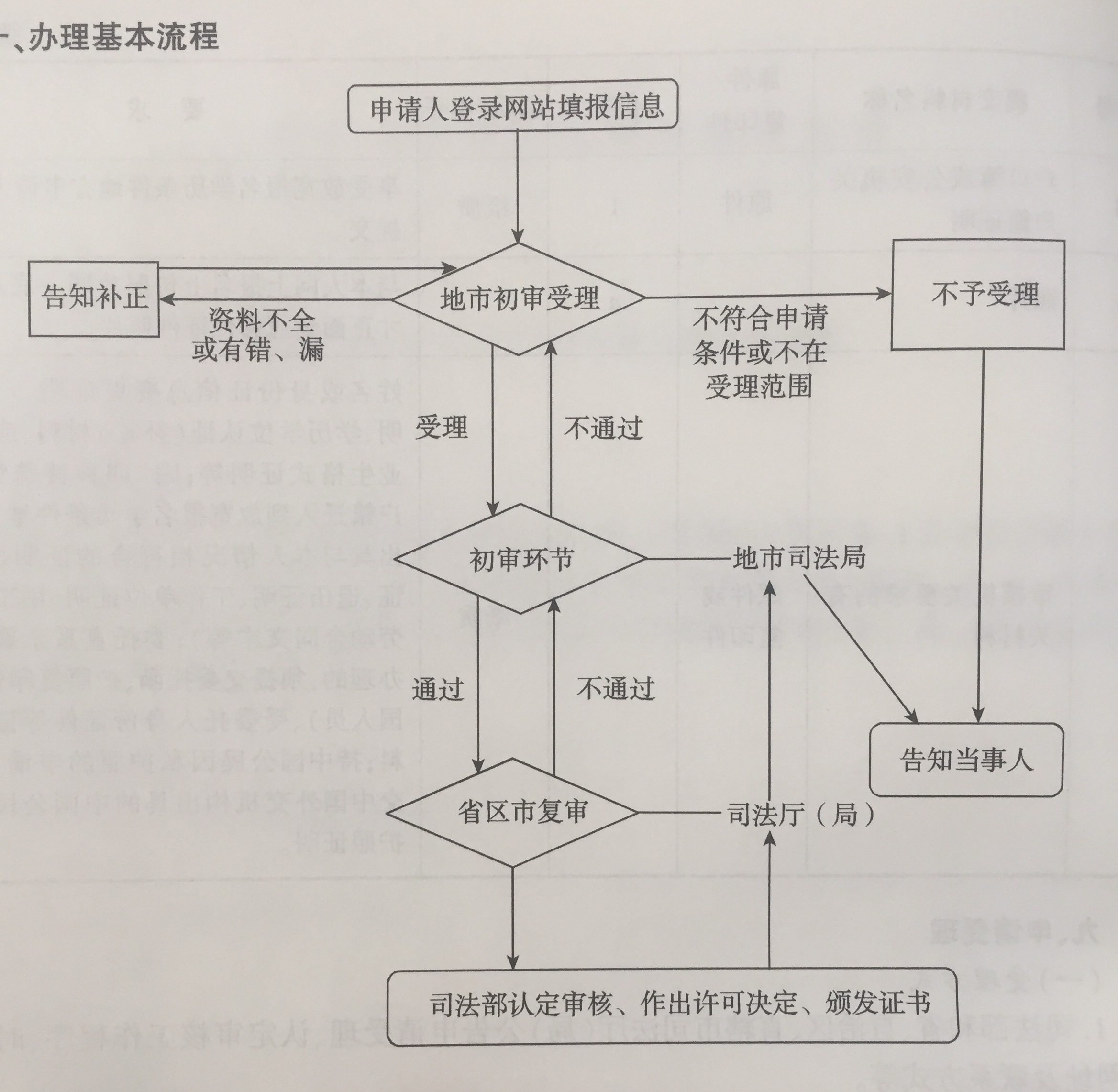| 市级初审 | 对申请人提交的申请材料是否符合受理条件进行审查 | 当场 | 提交省司法厅进行审查 |