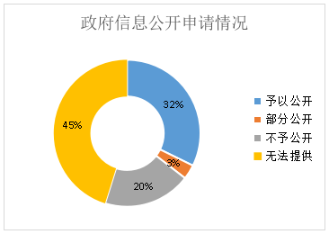 从办理结果看,予以公开10件,占比32%;部分公开1件,占比3%;不予公开6件,占比20%;无法提供14件,占比45%。